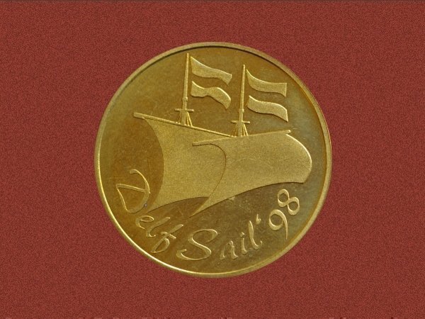 Twee zeilen en twee vlaggen, daaronder DelfSail '98